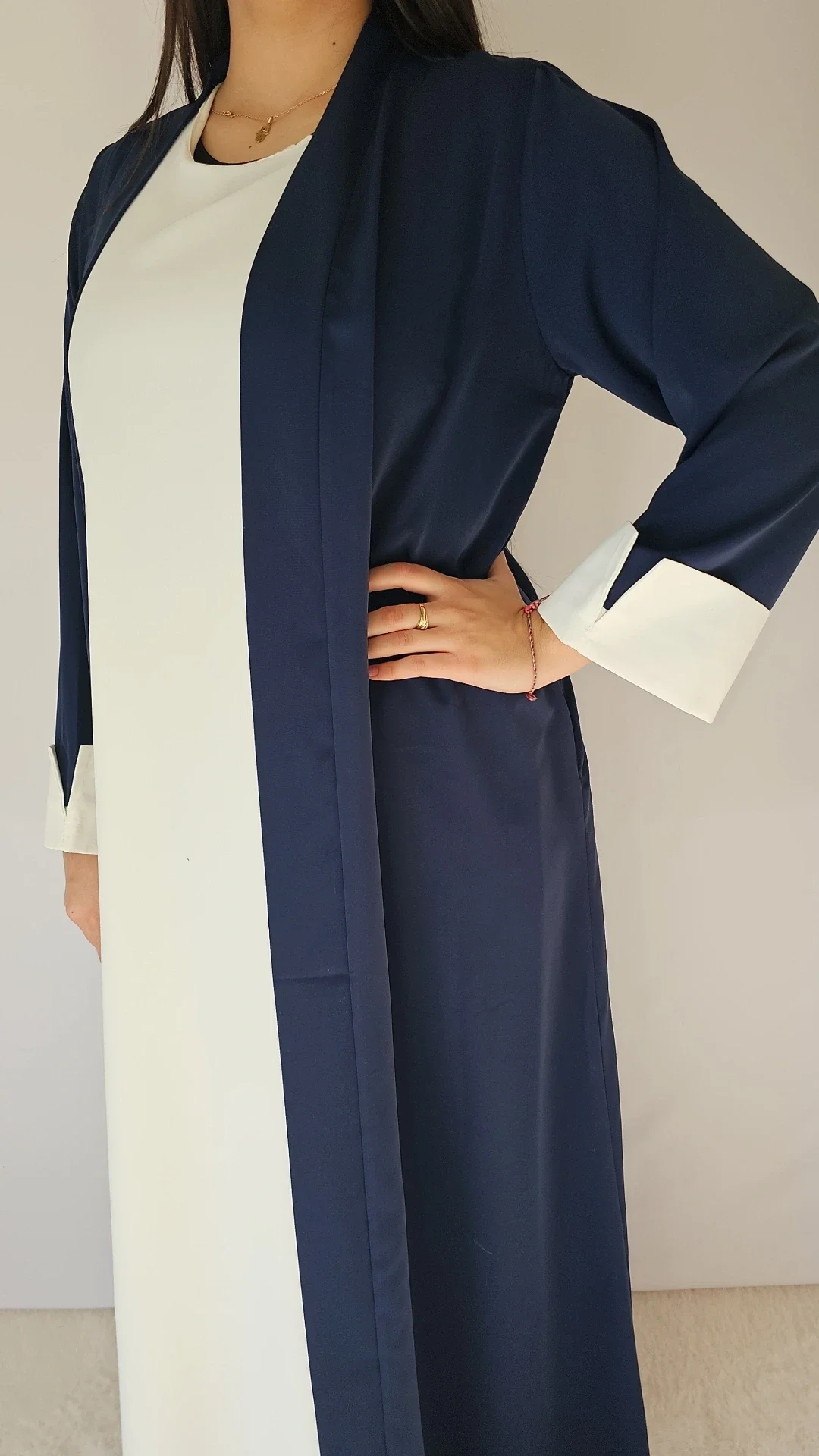 Ensemble composé d'une sous robe blanche manche courtes et d'un kimono bleu assortie avec les manches pour le rappel de la sous robe.